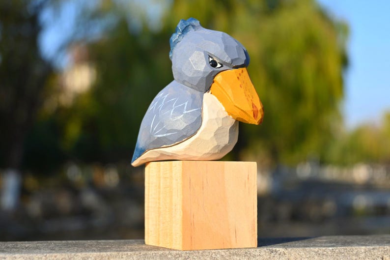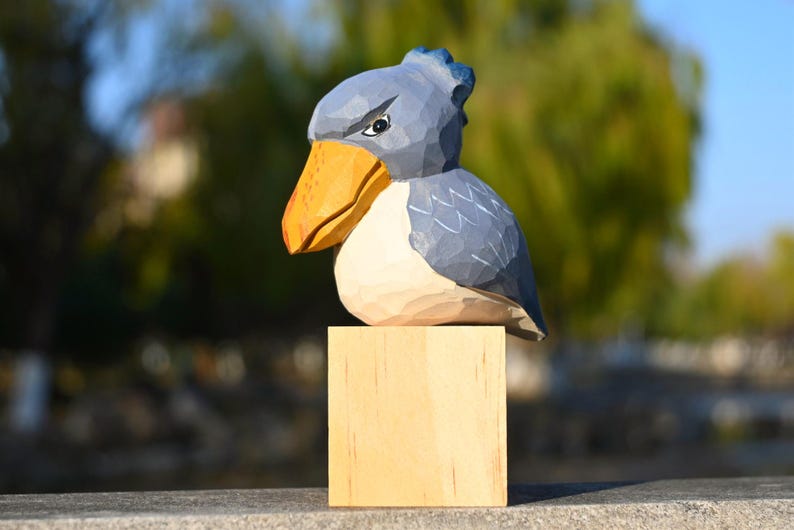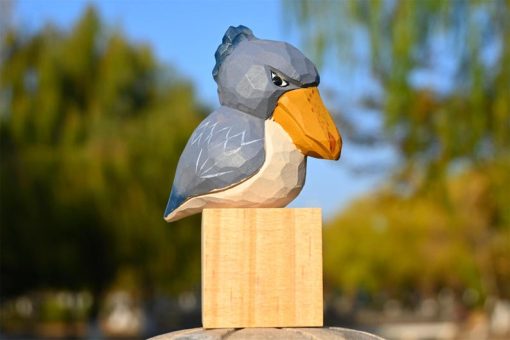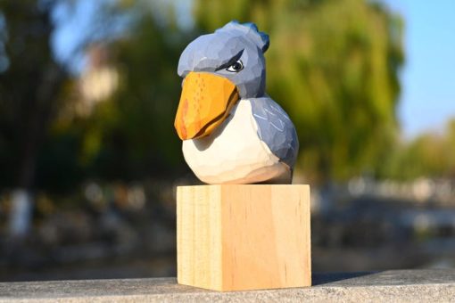 Thêm điểm nhấn độc đáo cho bàn làm việc với tượng chim Shoebill gỗ điêu khắc cỡ nhỏ – đường khối đa diện hiện đại, màu xám xanh trang nhã, dễ phối trong nhiều phong cách nội thất.