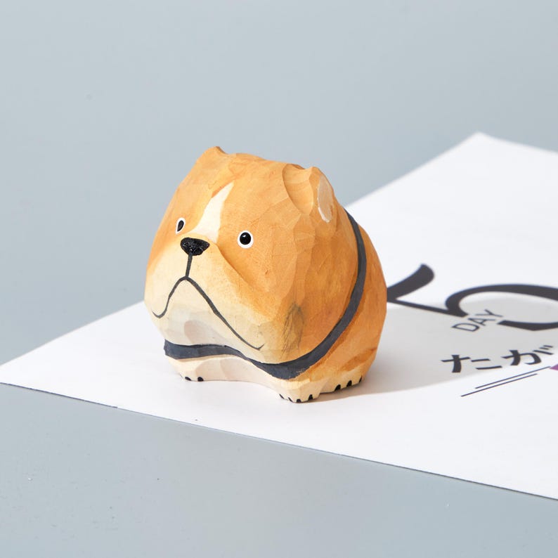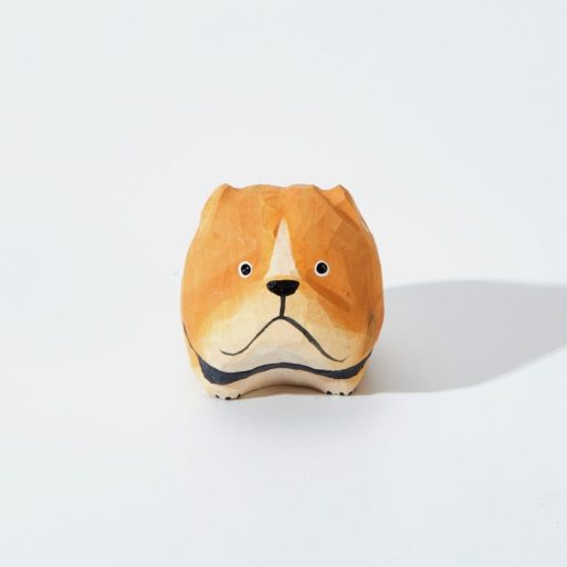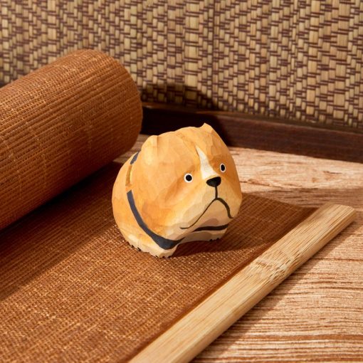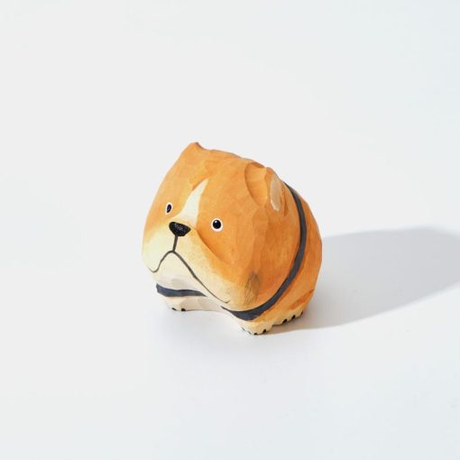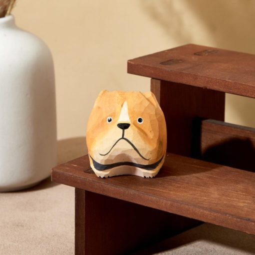 Tượng chó bulldog gỗ chạm khắc mang lại cảm giác ấm áp và vui nhộn cho bàn làm việc, kệ sách hay góc phòng. Kích thước nhỏ gọn 5 x 4 x 5 cm, tạo điểm nhấn thủ công tinh tế, dễ phối với nhiều phong cách nội thất.