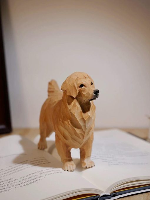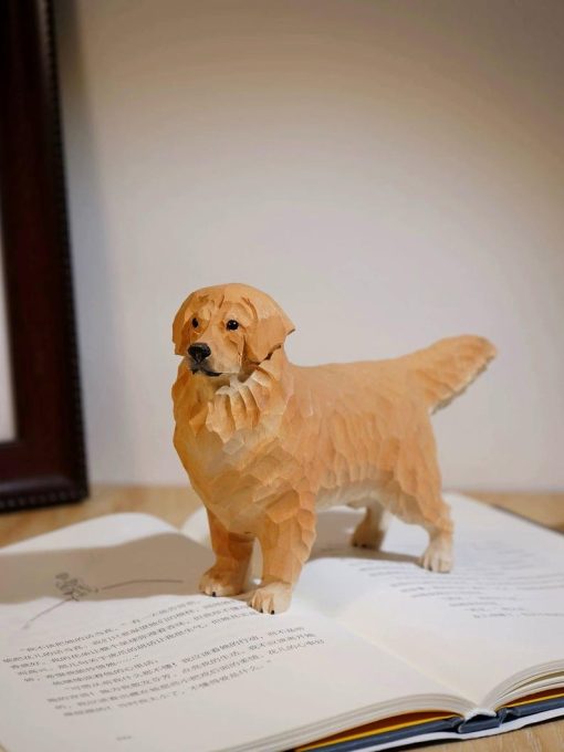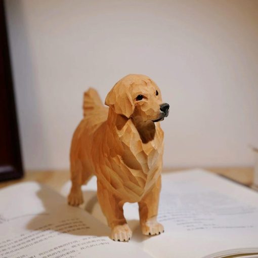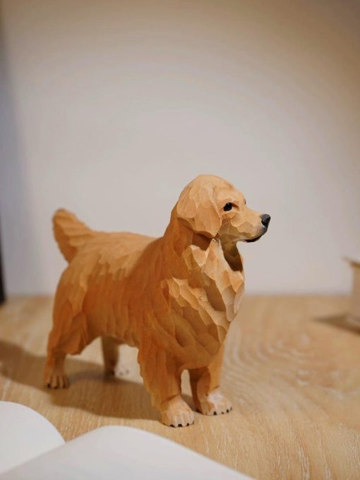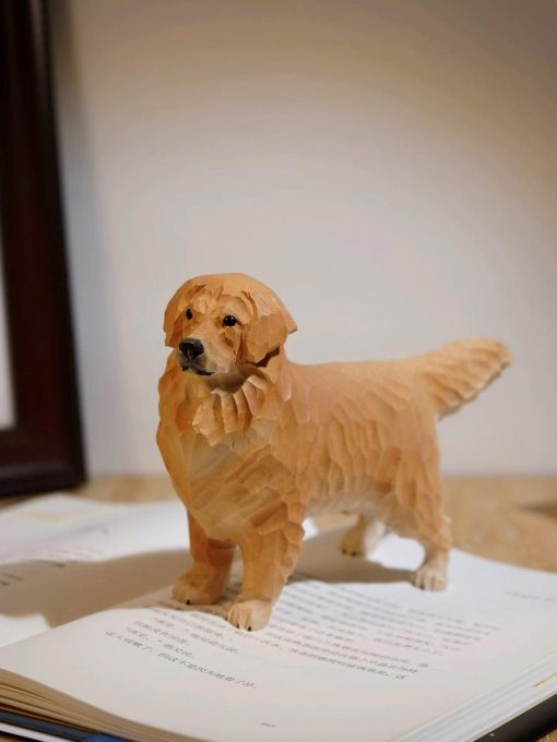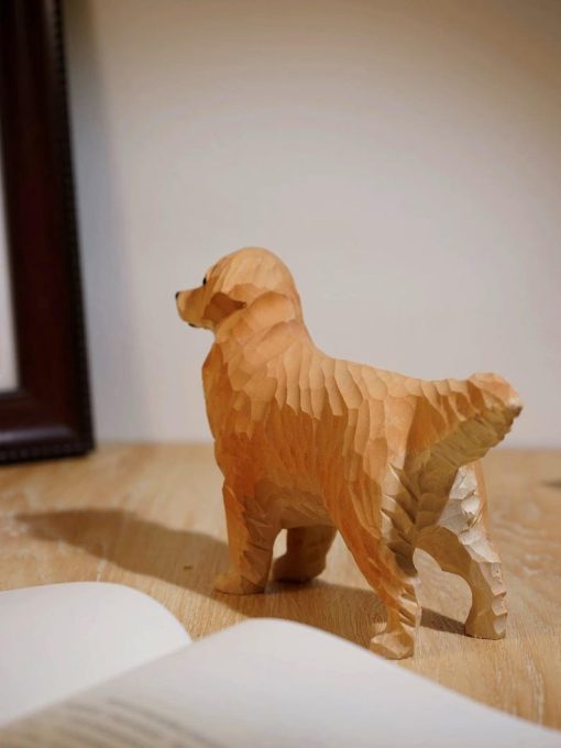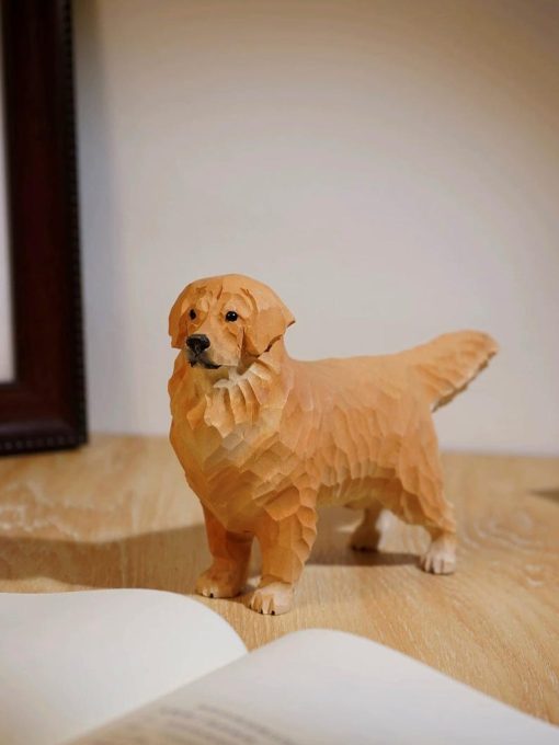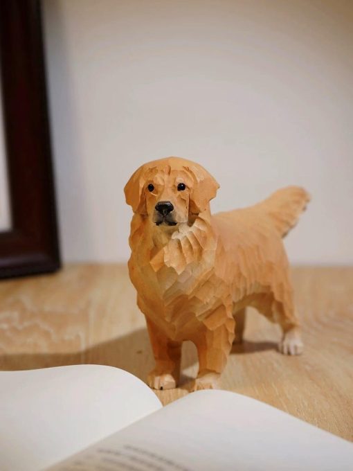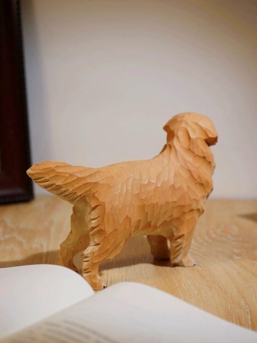Tạo điểm nhấn ấm áp cho góc làm việc với tượng chó Golden Retriever gỗ chạm tay – dáng đứng đáng yêu, bề mặt mộc mạc, phù hợp decor bàn/kệ sách và làm quà tặng.