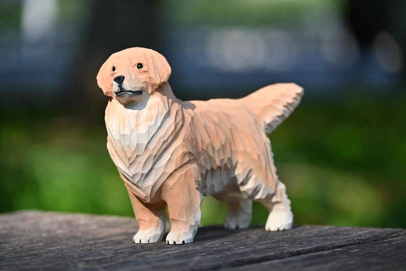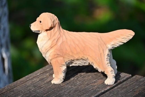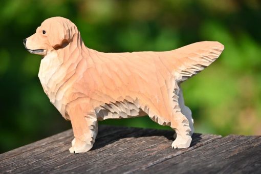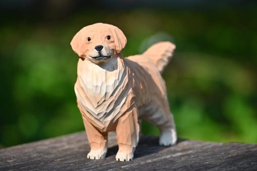 Mang hơi ấm thân thiện của chó Golden Retriever vào góc làm việc/kệ trang trí. Tượng gỗ điêu khắc thủ công, đường khối rõ nét, tạo điểm nhấn tự nhiên và sang trọng cho không gian.