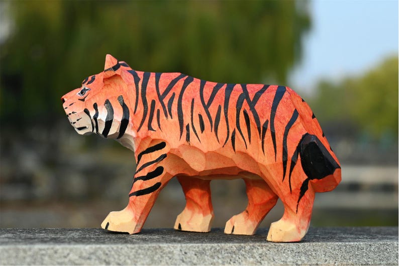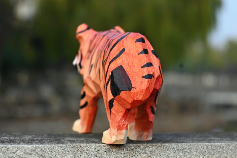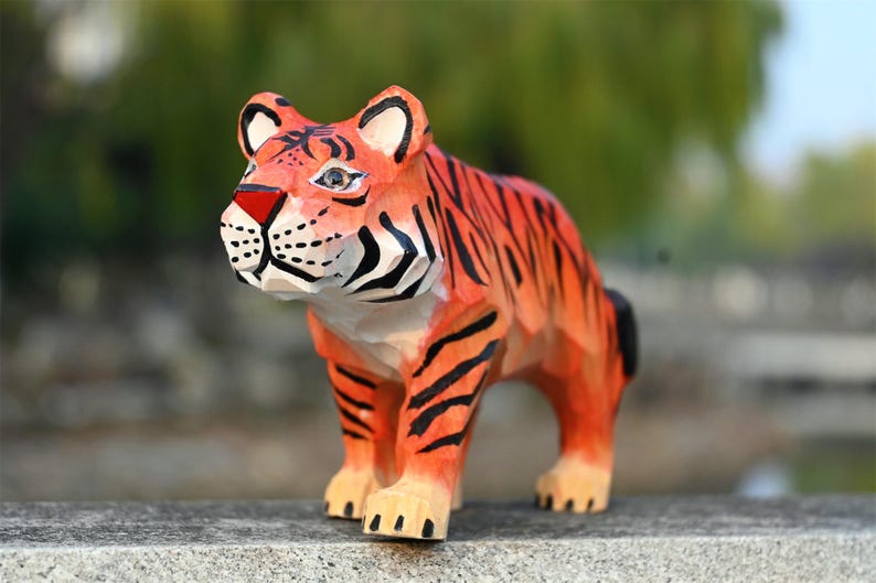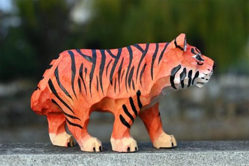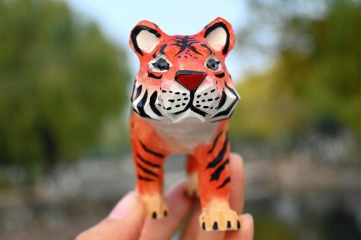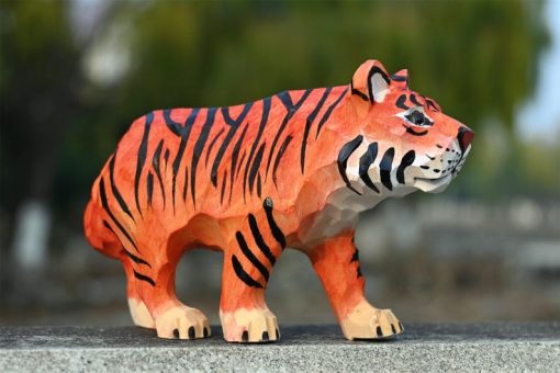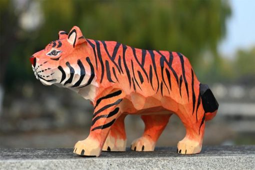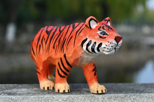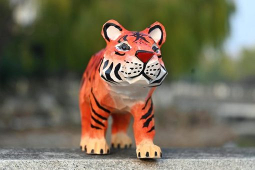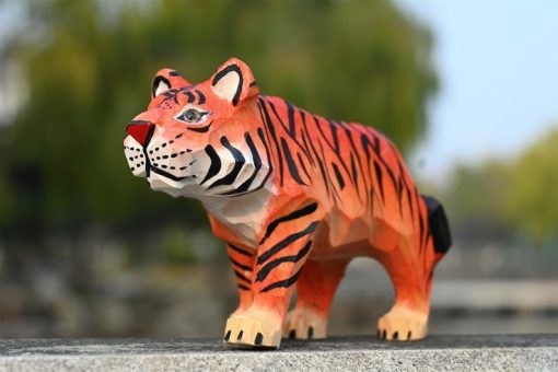Thêm điểm nhấn mạnh mẽ cho bàn làm việc hay kệ sách với tượng hổ gỗ điêu khắc – hình khối sắc nét, màu cam sọc đen ấn tượng, dễ nổi bật trong mọi không gian.