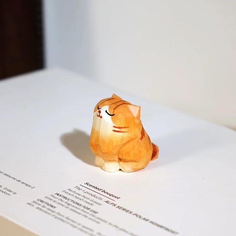 Làm xinh góc làm việc với tượng mèo gỗ mini chạm tay, kích thước nhỏ gọn dễ đặt trên bàn/kệ và là món quà đáng yêu cho người yêu mèo.