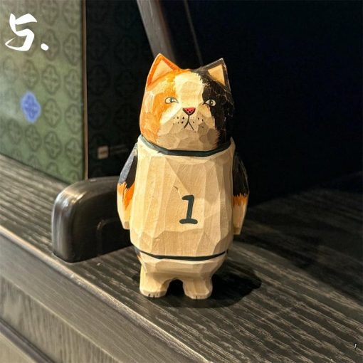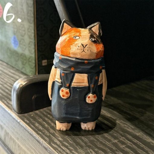 SEO Title: Tượng mèo gỗ chạm tay sơn màu – Decor bàn làm việc, quà tặng