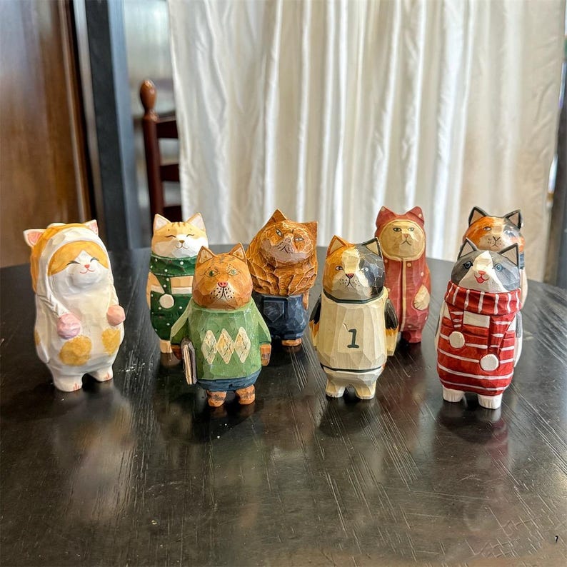Mang nét dễ thương và ấm áp cho góc bàn làm việc với tượng mèo gỗ chạm tay – mỗi chú mèo là một tác phẩm độc bản, phù hợp trang trí bàn, kệ sách hoặc làm quà tặng.