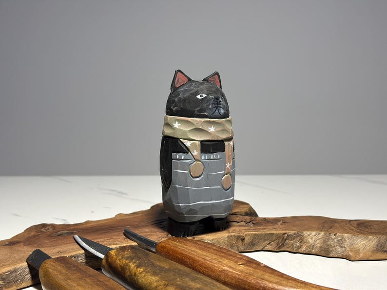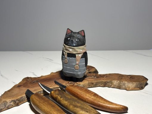 Tạo điểm nhấn ấm áp cho bàn làm việc/kệ sách với tượng mèo gỗ khắc tay 10 cm phong cách folk art mộc mạc. Hoàn thiện sơn tay giúp mỗi chú mèo có cá tính riêng, lý tưởng để trang trí, sưu tầm hoặc làm quà cho người yêu mèo.