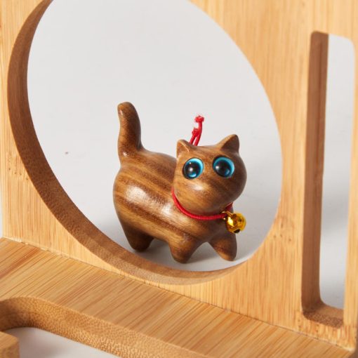 Tượng mèo gỗ verawood dáng nhìn lên đáng yêu giúp góc bàn làm việc hay kệ sách bừng sáng, mang lại cảm giác thư giãn cho người yêu décor và mê mèo.