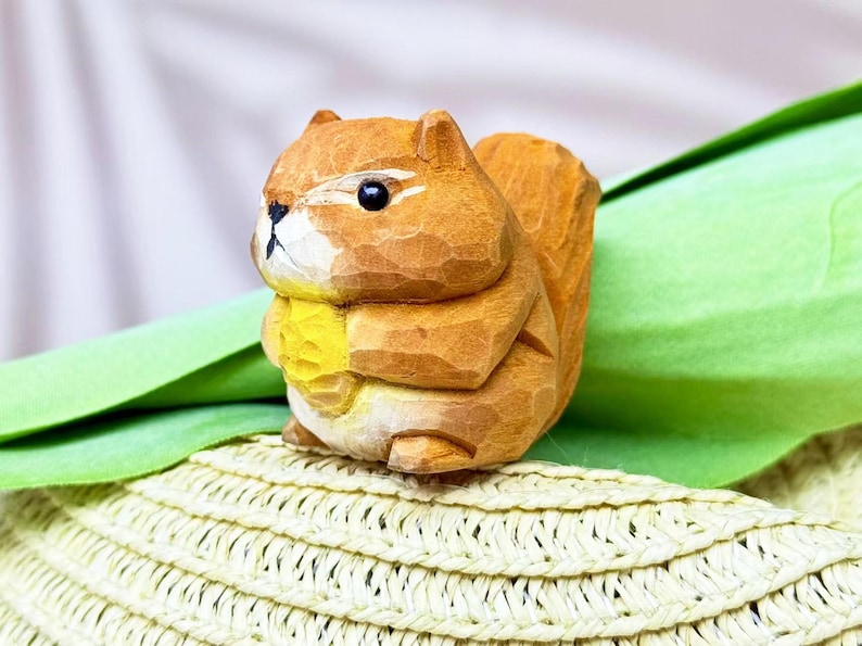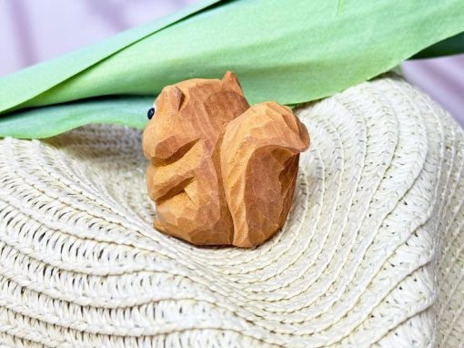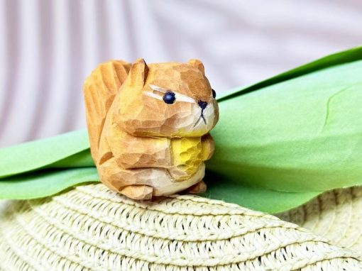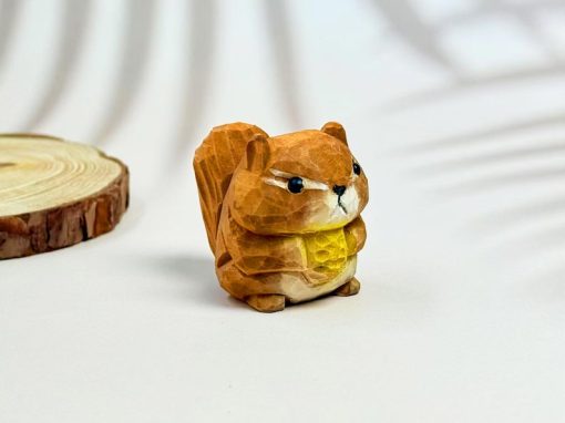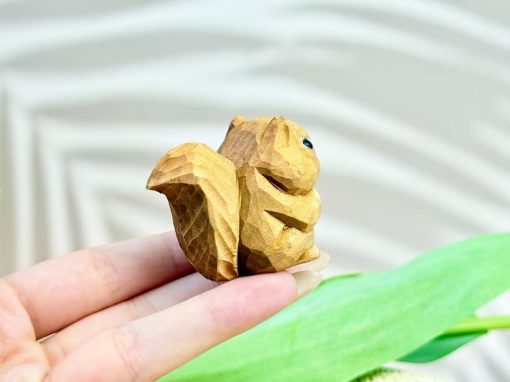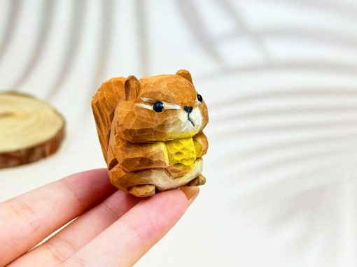 Tượng sóc gỗ chạm tay mini 5 cm, ôm quả thông