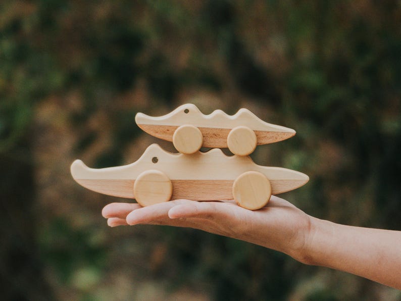 Cùng bé phiêu lưu kỳ thú với xe cá sấu gỗ kéo tay – món đồ chơi thủ công đáng yêu vừa giải trí vừa hỗ trợ phát triển kỹ năng. Khi bé đẩy hoặc kéo, cá sấu di chuyển vui nhộn, khuyến khích vận động, tăng cường kỹ năng phối hợp tay – mắt và phát triển thể chất.