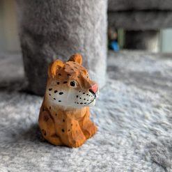 Tượng báo đốm khắc gỗ mini 7.6×5.1 cm họa tiết chấm