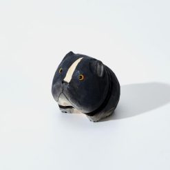 Tượng bulldog gỗ chạm khắc xám than 5x4x4 cm