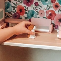 Tượng chó gỗ đeo túi 6×4.5×4 cm trang trí bàn
