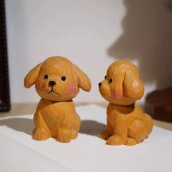 Tượng chó Golden gỗ chạm tay trang trí 4.7×3.5×3 cm