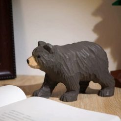 Tượng gấu đen gỗ basswood 16 × 11 cm trang trí bàn