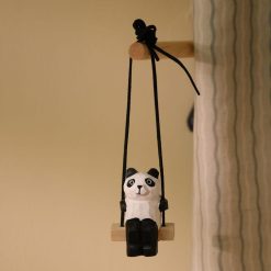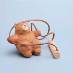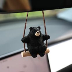 Tượng gấu gỗ đu xích treo xe hơi 8×7×5 cm