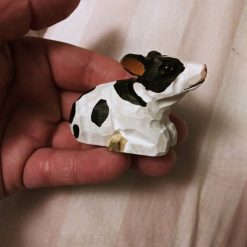Tượng gỗ bò sữa mini 6.4 cm khắc tay họa tiết đốm