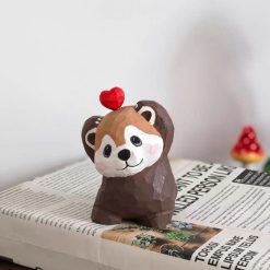 Tượng gấu trúc đỏ gỗ chạm khắc 9.4×5.6 cm