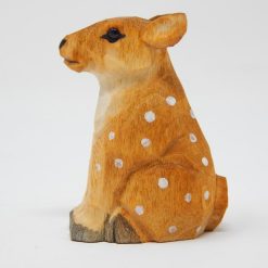 Tượng hươu đốm gỗ mini khắc tay 5.1 cm nâu chấm trắng