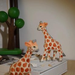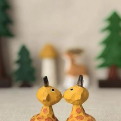 Tượng hươu cao cổ gỗ chạm tay 8 cm sơn màu