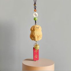 Móc khóa chó Teddy gỗ sơn tay 4.5×3.0×3.5 cm