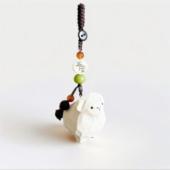 Móc khóa cừu trắng gỗ điêu khắc thủ công